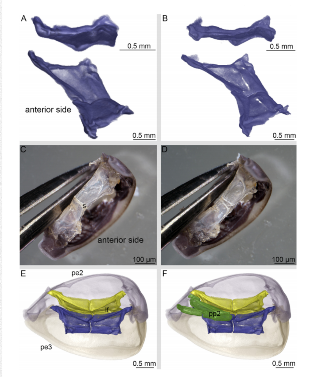 相较之下,旧模型由于缺乏三维成像支持,误将旋转点放在结构并不接触的胸腹板处,并假设存在固定铰链。这不仅无法解释胸腹板的可逆变形,也无法解释等足类的侧向弯曲。因此,Neoscan CT 的数据让研究可以以可验证的结构证据取代半推测式的传统模型,对等足类运动生物学具有奠基意义。